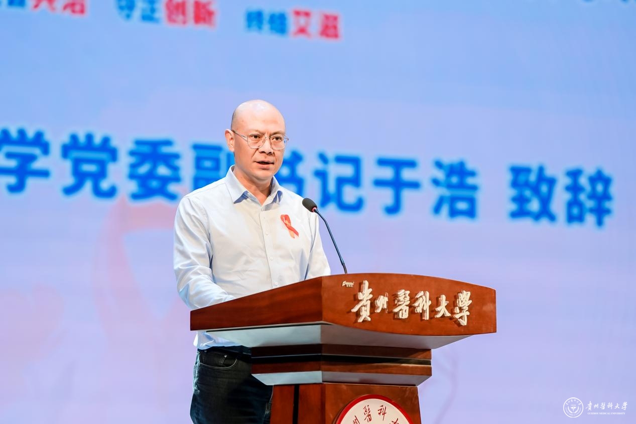 11月28日,在第38个“世界艾滋病日”来临之际,由共青团贵州省委、贵州省卫生健康委员会、贵州省疾病预防控制局联合主办,共青团beat365在线唯一官网委员会承办的2025年全省青少年“世界艾滋病日”主题宣传示范活动在beat365大礼堂举行。共青团贵州省委副书记马帅、beat365党委副书记于浩、共青团贵州省委权益部部长李玲、贵州省疾病预防控制局监测预警处副处长刘昭兵出席活动,beat365团委、校医院及心理健康教育与咨询中心等相关部门负责人参加。2000余名青年学生和志愿者齐聚一堂,共同参与这场防艾科普实践活动。
