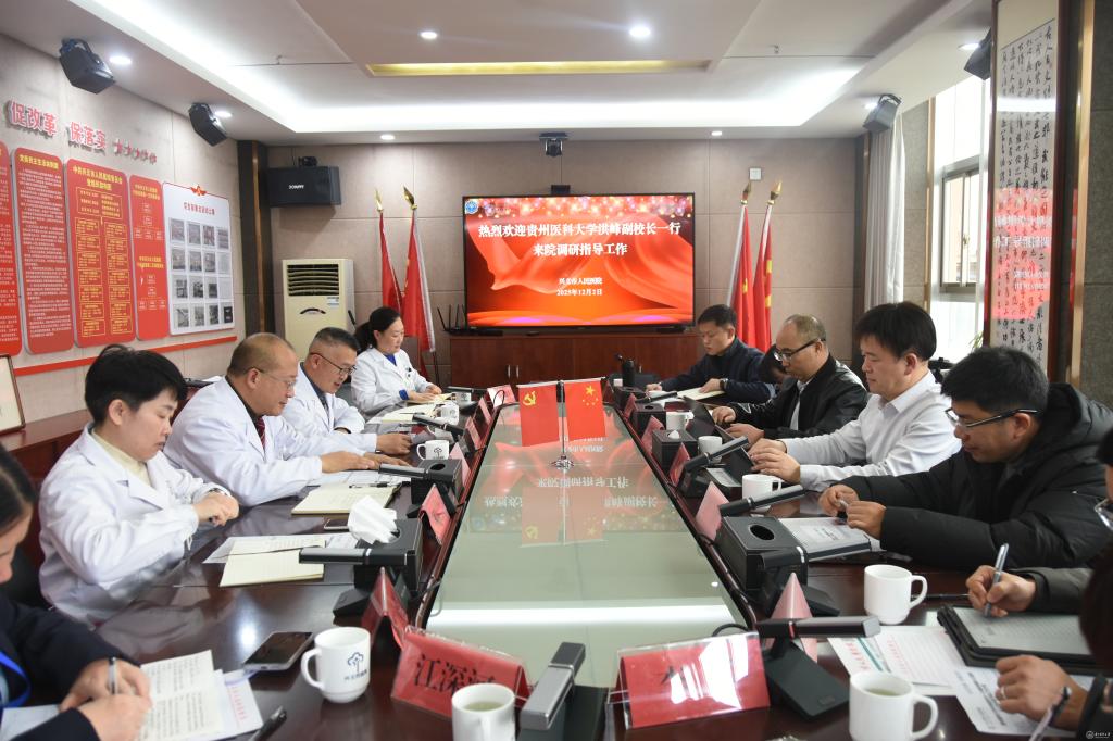洪峰一行实地走访了医院门诊大楼和妇产科、免疫实验室等临床教学科室,详细了解医院软硬件设施及科室开展教育教学情况,与附属兴义医院领导班子、各教研室主任、教学骨干及职能科室负责人围绕临床教学质量提升、科研及学科建设攻坚、师资队伍培养等核心议题开展座谈,深入研讨校院融合发展新路径。