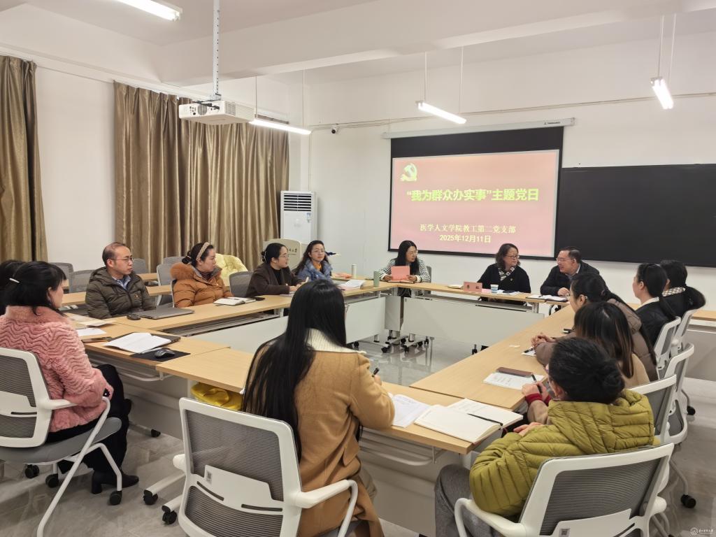 此次活动,有效解答了部分教师党员思想上的困惑,体现了党建在业务高质量发展中的引领作用,激发了全体党员的干事创业热情。医学人文学院教工第二党支部将持续推进“党建+业务”双融双促,切实将组织优势转化为发展动能,为学院高质量发展贡献智慧和力量。