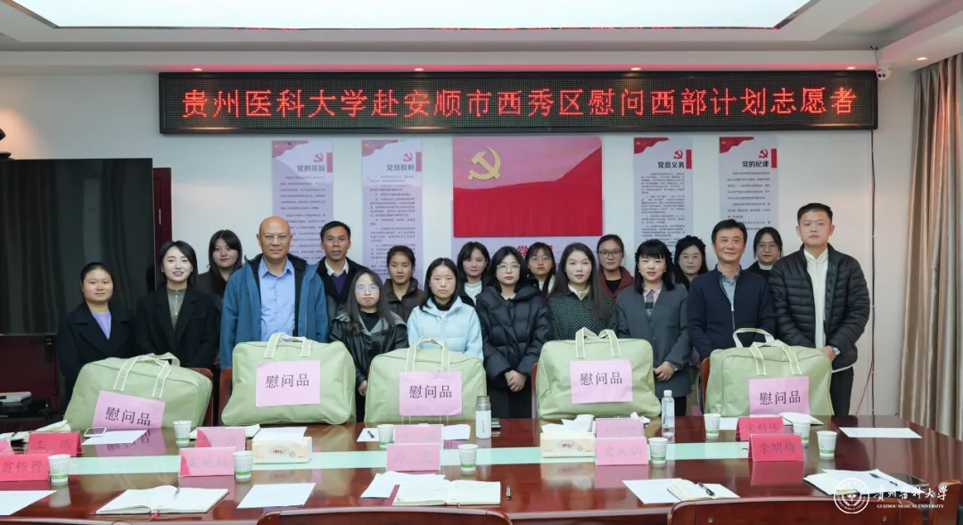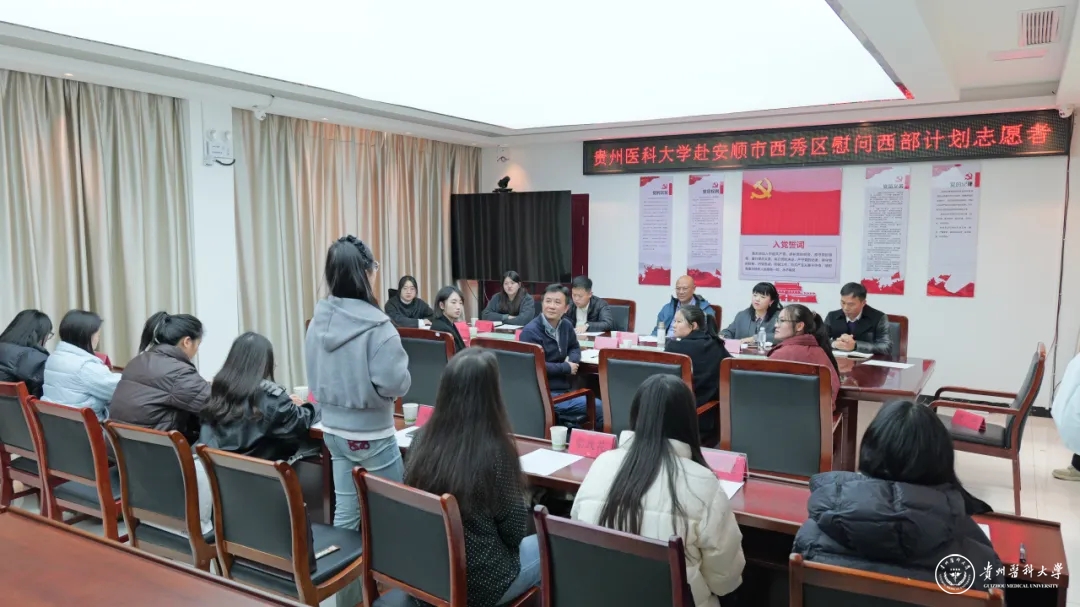 12月19日,校党委副书记于浩率队前往安顺市西秀区,看望慰问beat365在当地服务的西部计划志愿者。西秀区委副书记孙亮、校团委书记王妤煜、护理学院党委副书记何为、团西秀区委书记吴施颉,以及校团委、护理学院、西秀区相关同志与9名志愿者交流心声、共话成长。