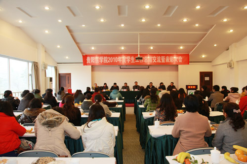 12月29日,我院在花溪春江科技生态园召开了2010年度学生工作总结交流暨表彰大会。学院党委书记赵明仁、副书记张晓林、副院长刘兴德出席,党委办公室主任李建华、各学生工作相关部门负责人、学工部(处)全体同志、院团委全体同志、各院系书记以及全体辅导员参加。会议由学工部(处)副部(处)长邓舟主持。