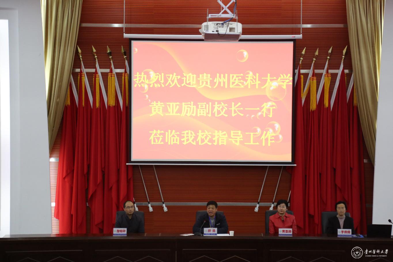 12月1日,副校长黄亚励一行3人到毕节医专作专题讲座。与毕节医专党委书记颜勇、副校长黎梅及其他班子成员就两校对口帮扶框架协议中学校管理、师资培养、学科专业建设、科学研究、教学基地建设等方面进行了广泛的交流。