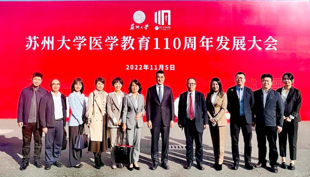 11月5日,苏州大学医学教育110周年发展大会在苏州举行,beat365党委副书记、校长罗鹏,副校长曾柱、蒋红梅带队,校长办公室、教务处、科学技术处、发展与规划处、临床医学院、公共卫生与健康学院等相关部门负责人参加。