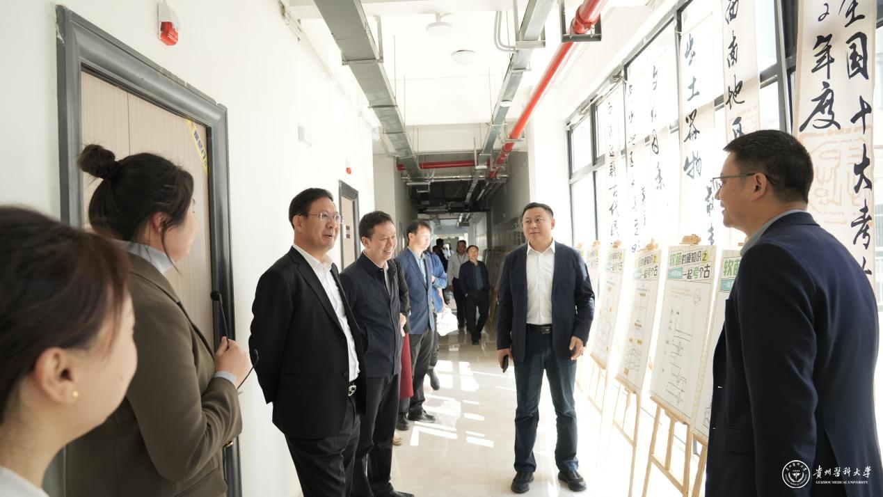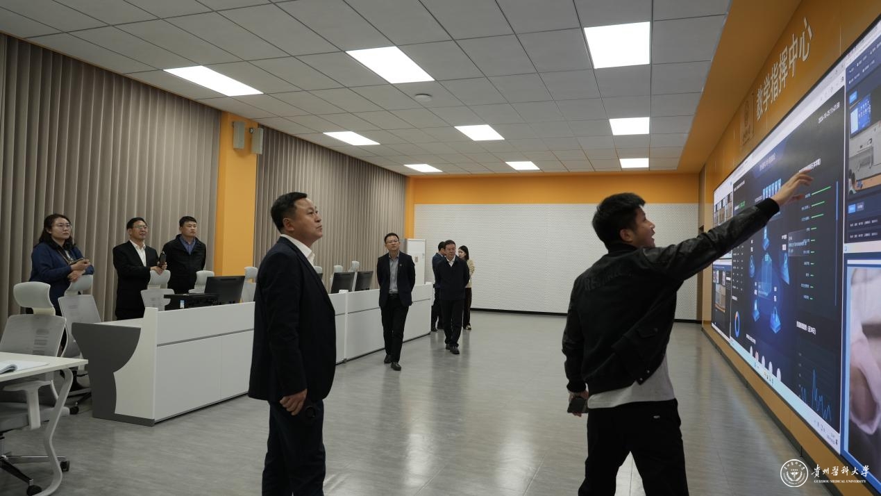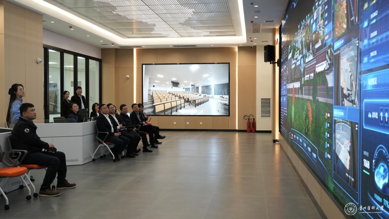 座谈会结束后,汤磊及相关部门人员带领师建平一行参观了心理中心、学校智慧教室、教学指挥中心、教学督导室、教学一体化平台、虚拟演播厅等智能硬件设施以及“一站式”学生社区等场所。