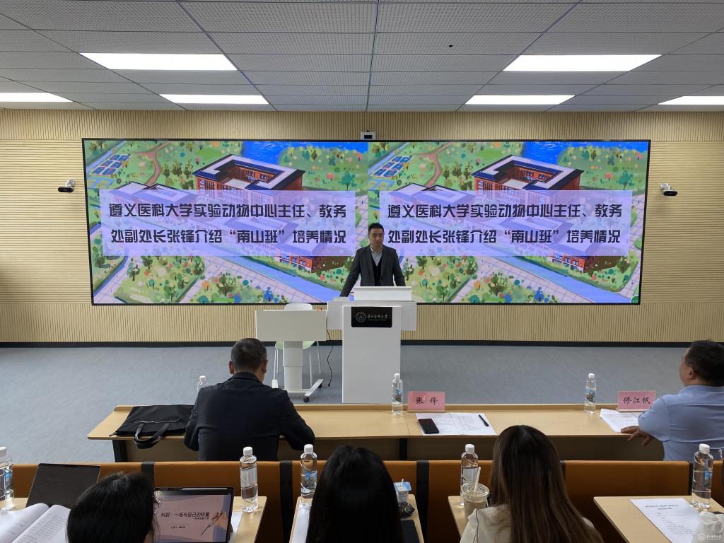 11月11日,遵义医科大学实验动物中心主任、教务处副处长张锋及“南山班”师生一行15人到beat365云漫湖校区参观交流。交流座谈会在临床医学组团R307S智慧教室召开,教务处处长汪志勇,教务处副处长修江帆参加。修江帆主持交流座谈会。