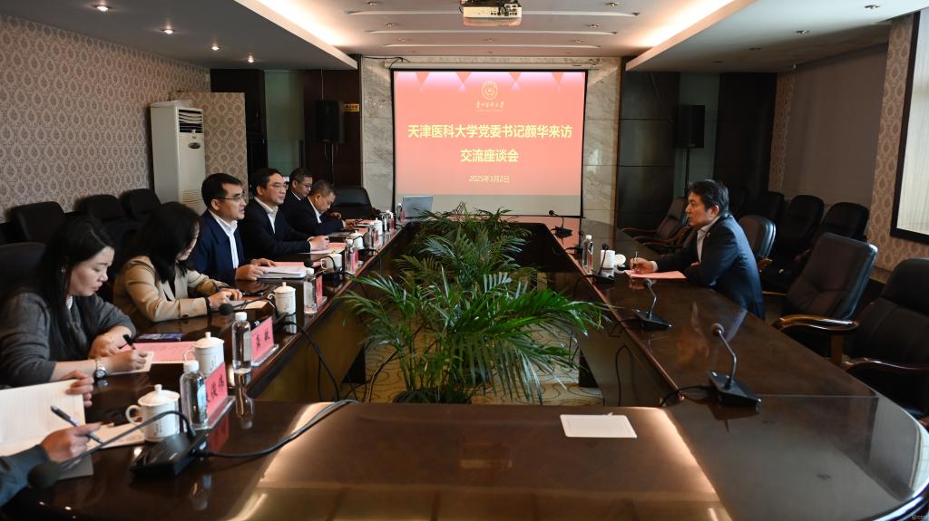 3月2日,天津医科大学党委书记颜华来校考察交流。学校党委副书记、校长罗鹏,党委委员、附属医院党委书记李海洋,党委委员、副校长齐晓岚,附属医院副院长、临床医学院执行院长陈腾祥以及学校相关部门负责人参加交流座谈。