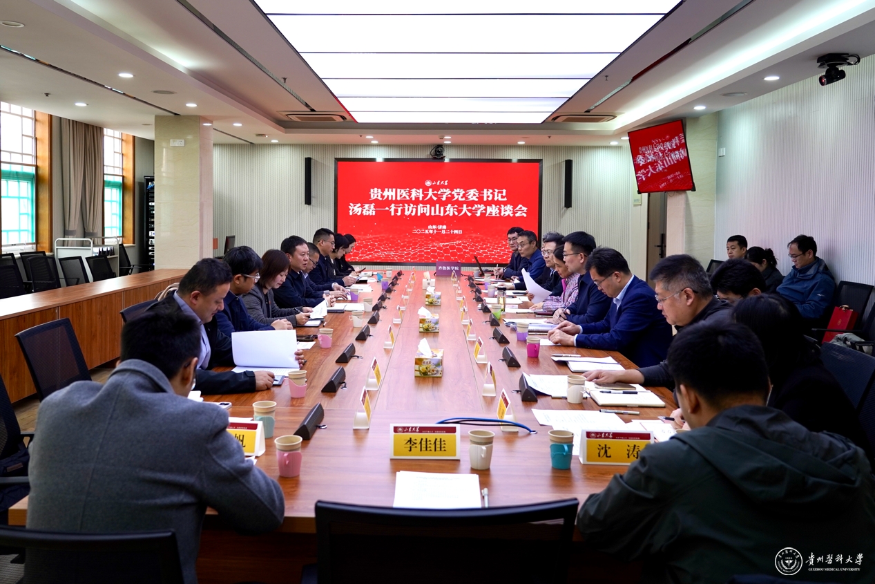 会见中,李术才代表山东大学对汤磊一行的到访表示热烈欢迎。他表示,山东大学将立足自身学科优势与办学资源,通过开放人才双向流动机制、共享实验室设备与研究资源、开展医工交叉等跨学科合作、优先推荐贵州籍毕业生回黔就业创业等举措,精准助力beat365在线唯一官网发展。汤磊表示,希望在临床医学、基础医学、民族医药资源挖掘等领域获得山东大学更多支持,同时邀请山东大学将beat365在线唯一官网作为健康医药领域合作基地,期待双方在师生互访、科研项目联合攻关等方面深化合作,共同服务贵州大健康产业高质量发展。