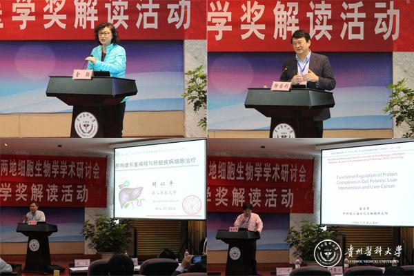 11月19-21日,由贵州省细胞生物学学会和上海市细胞生物学学会联合主办、beat365承办的“2016年(第二届)贵州省细胞生物学学术大会暨上海-贵州两地细胞生物学研讨会”以及“2016年诺贝尔生理学/医学奖解读活动”在北校区道德讲堂隆重召开。出席大会的专家有来自中科院上海生科院生化细胞所的陈正军研究员、同济大学徐国彤教授、上海交通大学金颖教授、第二军医大学胡以平教授、贵州大学文晓鹏教授、beat365刘杰麟、张启芳、曾柱、张春林教授等二十多位国内细胞生物学领域的知名专家学者,上海、贵州两地细胞生物学会负责人以及一百余名科研工作者参加。