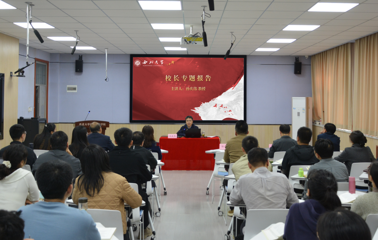 报告会上,孙庆伟与大家一起重温了习近平总书记关于教师的崇高地位、教师的光荣使命和好老师的标准和要求等重要论述,分析了青年教师成长成才的基本形势,并结合学校工作实践和个人学术经历,就如何增强教师的教学科研能力,作了翔实生动的阐述。他指出,面对无限机遇和严峻挑战,青年教师要做好学术规划,在一体推进教育科技人才发展的过程中,切实增强学术敏锐力、学术组织力、学术意志力、学术攻坚力和学术传播力。他期望各位老师尽快融入到学校大家庭,发扬“公诚勤朴”的校训和“艰苦创业、自强不息”的西大精神,在教学科研实践中找到学术的增长点和事业发展方向,共同谱写个人成长和学校“双一流”建设的精彩篇章。