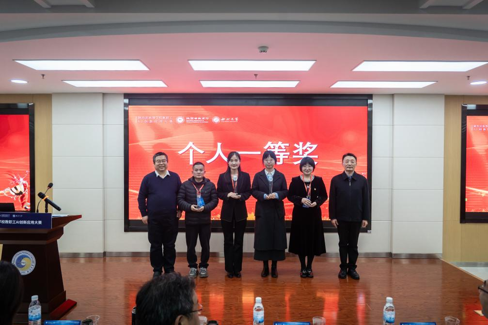 11月19日,陕西省高等学校教职工AI创新应用大赛决赛在威尼斯官网长安校区举办,来自全省43所高校102个赛队参加。校党委副书记赵作纽出席闭幕式。