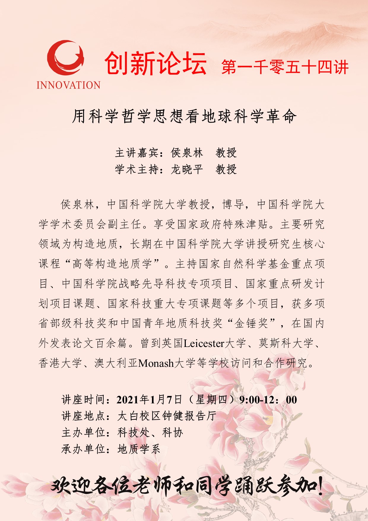 侯泉林 教授 welcome欢迎光临威尼斯集团创新论坛第一千零五十四讲:用科学哲学思想看地球科学革命 讲座时间 2021年1月7日(星期四) 9:00-12:00 讲座地点 太白校区钟健报告厅 讲座人介绍 侯泉林 教授 讲座内容