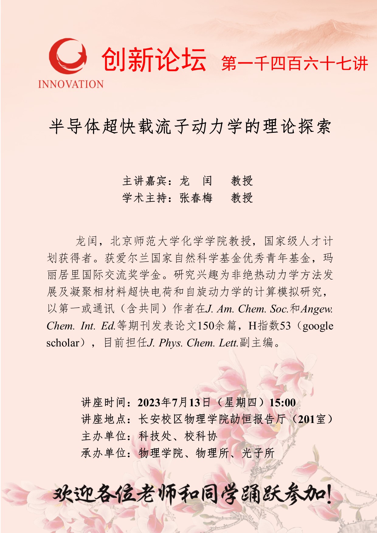 龙闰 教授 welcome欢迎光临威尼斯集团创新论坛第一千四百六十七讲:半导体超快载流子动力学的理论探索 讲座时间 2023年7月13日(星期四)15:00 讲座地点 长安校区物理学院劼恒报告厅(201室) 讲座人介绍 龙闰 教授 讲座内容