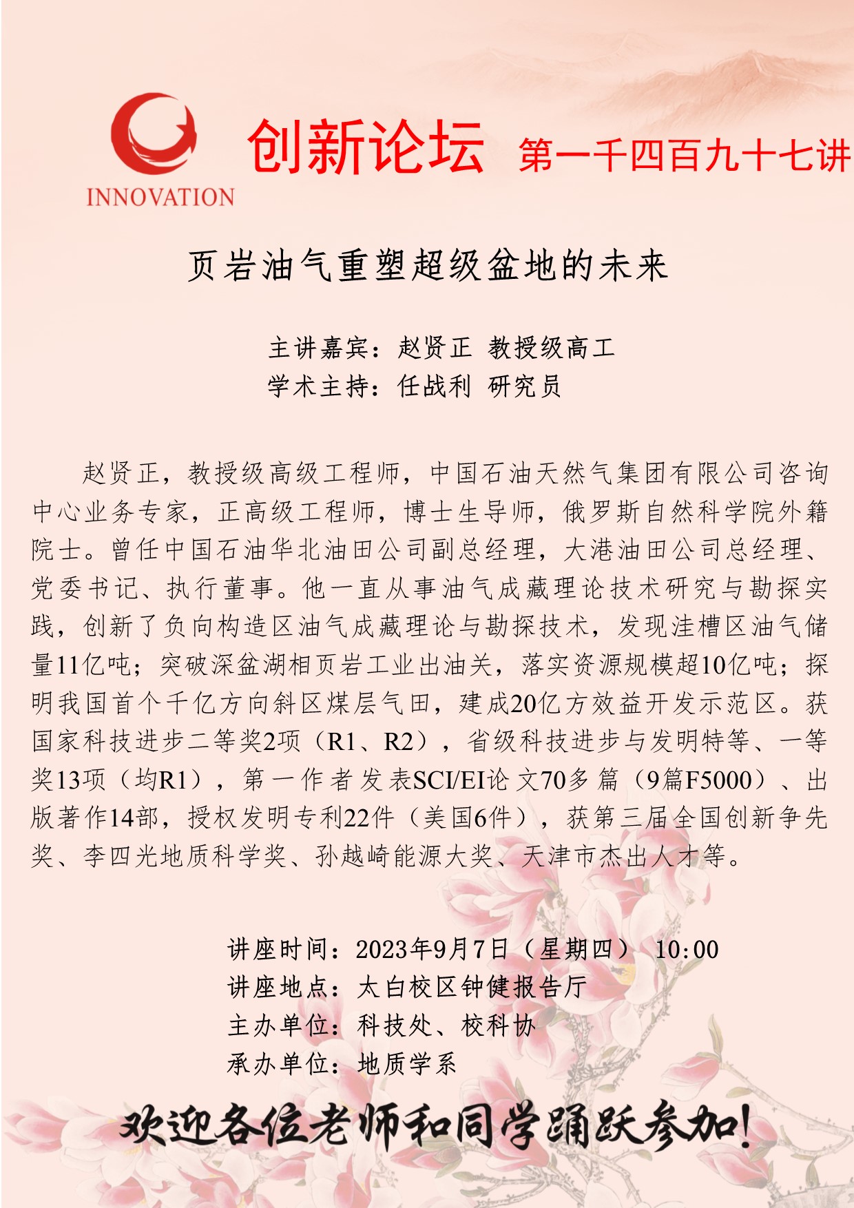 赵贤正 教授级高工 welcome欢迎光临威尼斯集团创新论坛第一千四百九十七讲:页岩油气重塑超级盆地的未来 讲座时间 2023年9月7日(星期四) 10:00 讲座地点 太白校区钟健报告厅 讲座人介绍 赵贤正 教授级高工 讲座内容