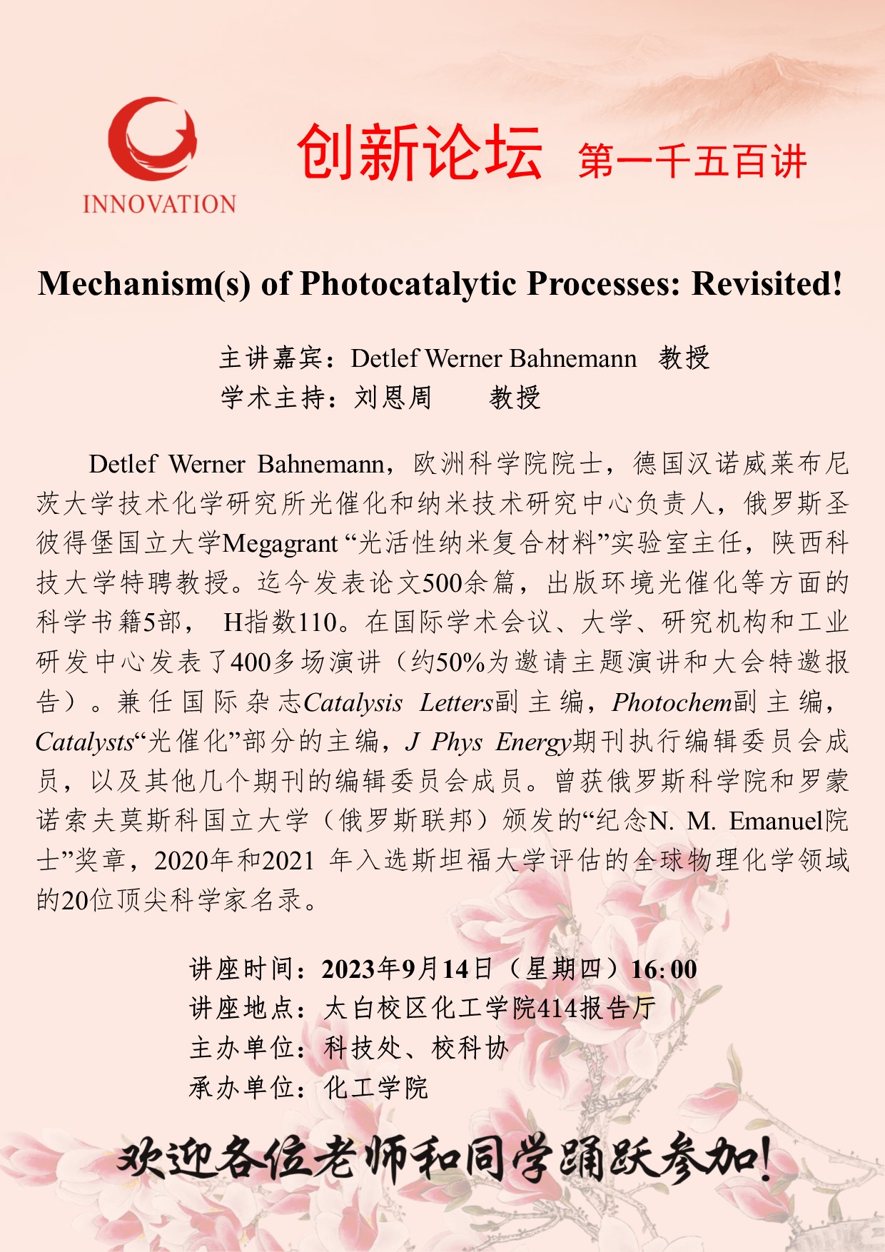 Detlef Werner Bahnemann 教授 welcome欢迎光临威尼斯集团创新论坛第一千五百讲:Mechanism(s) of Photocatalytic Processes: Revisited! 讲座时间 2023年9月14日(星期四)16:00 讲座地点 太白校区化工学院414报告厅 讲座人介绍 Detlef Werner Bahnemann 教授 讲座内容