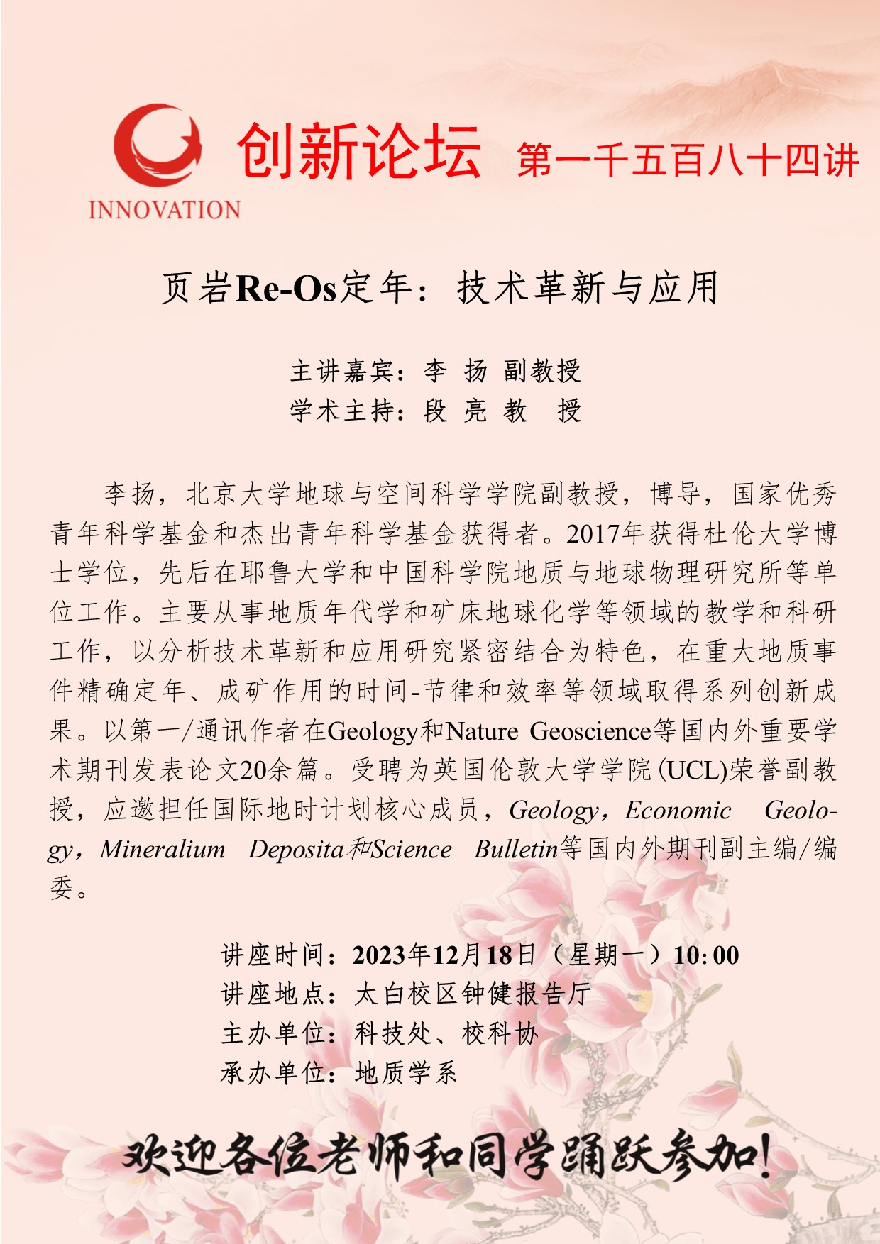 李扬 副教授 welcome欢迎光临威尼斯集团创新论坛第一千五百八十四讲:页岩Re-Os定年: 技术革新与应用 讲座时间 2023年12月18日(星期一)10:00 讲座地点 太白校区钟健报告厅 讲座人介绍 李扬 副教授 讲座内容