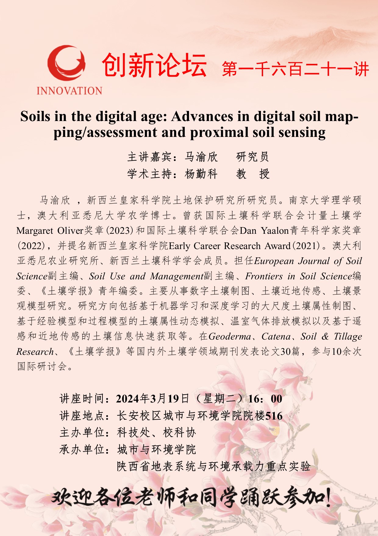 马渝欣 研究员 welcome欢迎光临威尼斯集团创新论坛第一千六百二十一讲:Soils in the digital age: Advances in digital soil mapping/assessment and proximal soil sensing 讲座时间 2024年3月19日(星期二)16:00 讲座地点 长安校区城市与环境学院院楼516 讲座人介绍 马渝欣 研究员 讲座内容