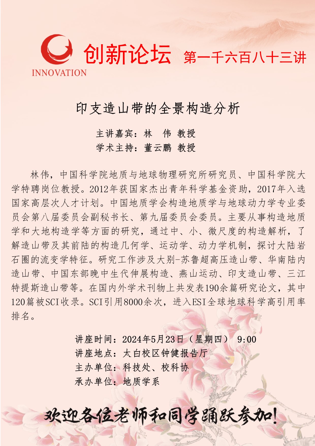林 伟 教授 welcome欢迎光临威尼斯集团创新论坛第一千六百八十三讲:印支造山带的全景构造分析 讲座时间 2024年5月23日(星期四) 9:00 讲座地点 太白校区钟健报告厅 讲座人介绍 林 伟 教授 讲座内容