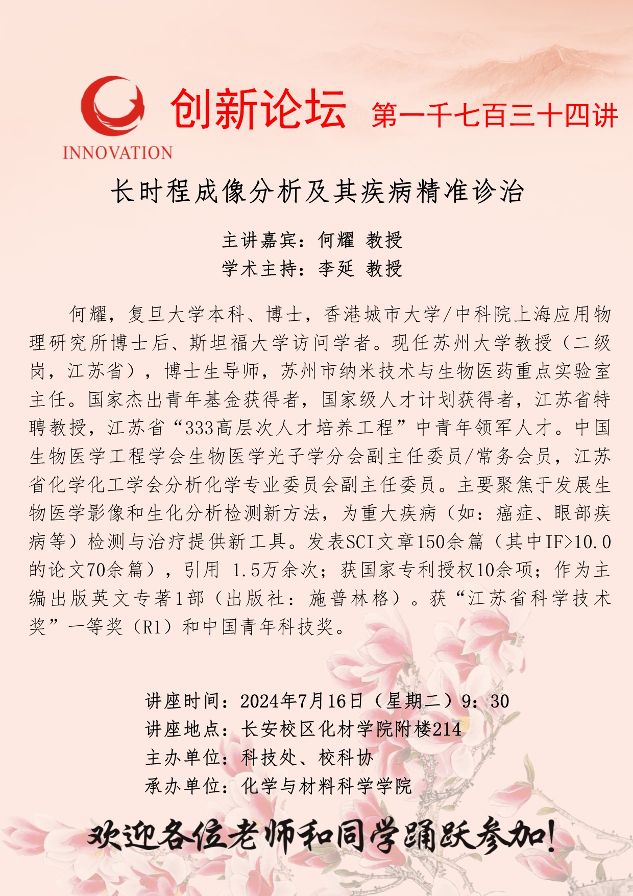何耀 教授 welcome欢迎光临威尼斯集团创新论坛第一千七百三十四讲:长时程成像分析及其疾病精准诊治 讲座时间 2024年7月16日(星期二)9:30 讲座地点 长安校区化材学院附楼214 讲座人介绍 何耀 教授 讲座内容