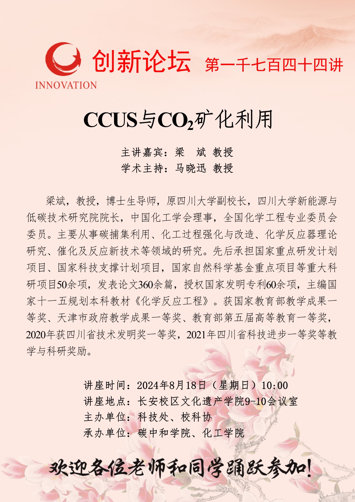 梁斌 教授 welcome欢迎光临威尼斯集团创新论坛第一千七百四十四讲:CCUS与CO2矿化利用 讲座时间 2024年8月18日(星期日)10:00 讲座地点 长安校区文化遗产学院9-10会议室 讲座人介绍 梁斌 教授 讲座内容