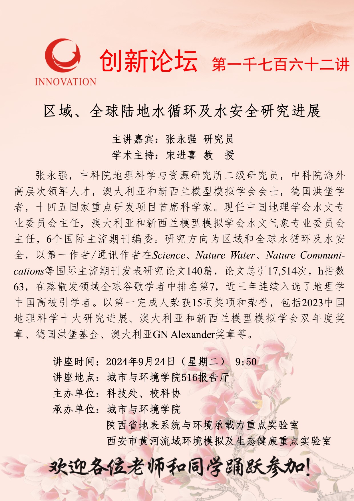 张永强 研究员 welcome欢迎光临威尼斯集团创新论坛第一千七百六十二讲:区域、全球陆地水循环及水安全研究进展 讲座时间 2024年9月24日(星期二) 9:50 讲座地点 城市与环境学院516报告厅 讲座人介绍 张永强 研究员 讲座内容