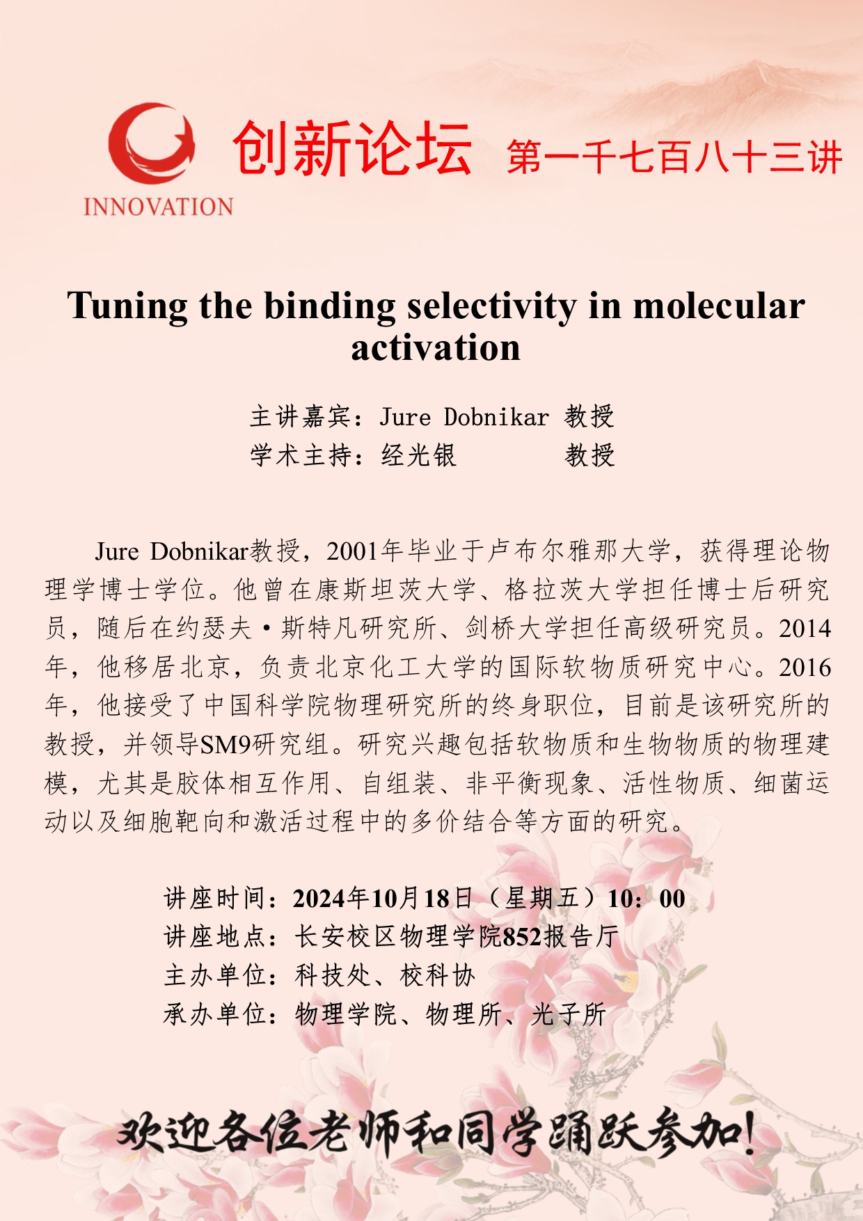Jure Dobnikar 教授 welcome欢迎光临威尼斯集团创新论坛第一千七百八十三讲:Tuning the binding selectivity in molecular activation 讲座时间 2024年10月18日(星期五)10:00 讲座地点 长安校区物理学院852报告厅 讲座人介绍 Jure Dobnikar 教授 讲座内容