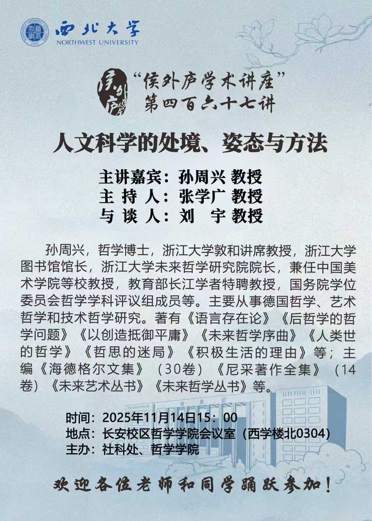 “侯外庐学术讲座”第四百六十七讲:人文科学的处境、姿态与方法