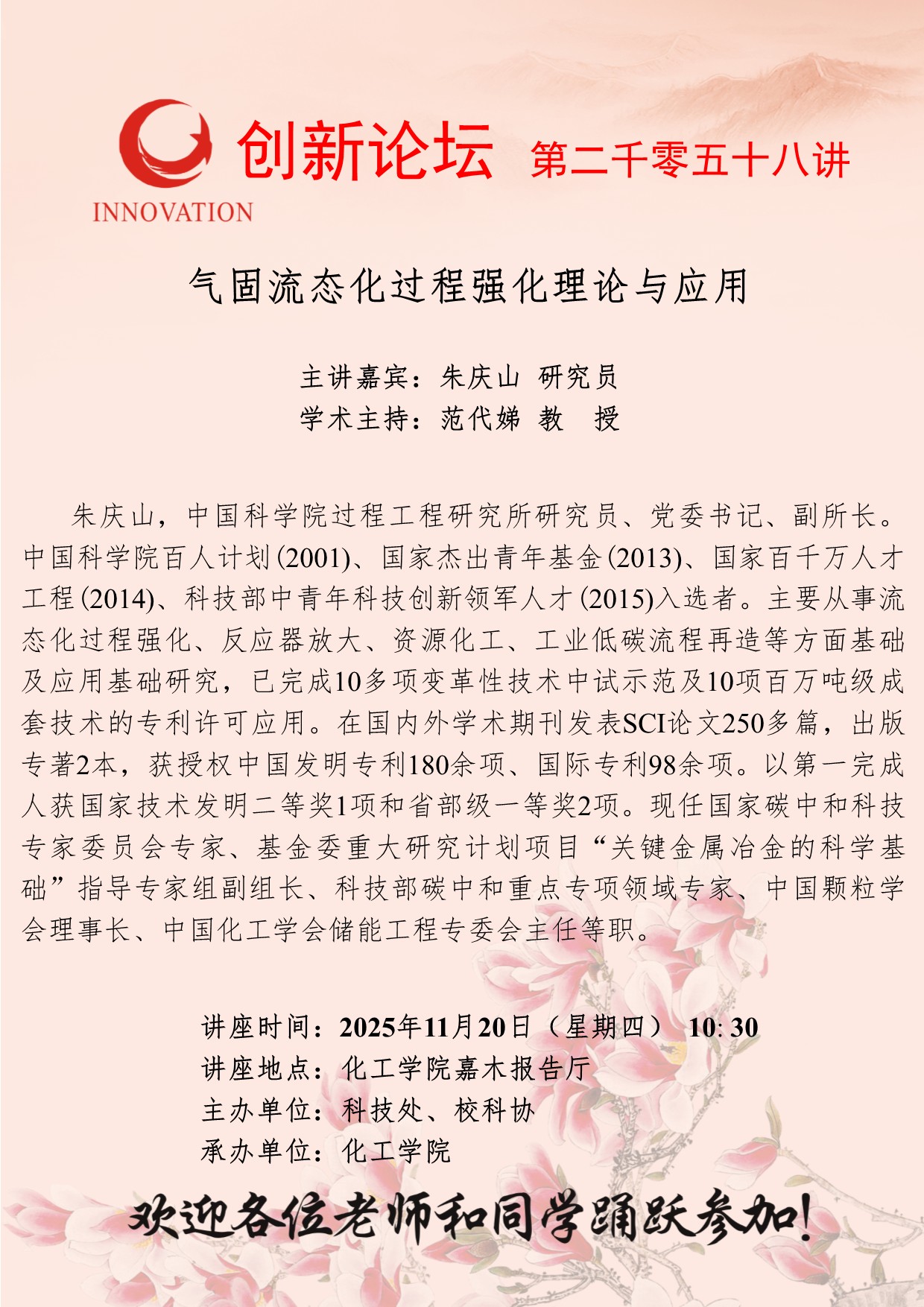 朱庆山 研究员 welcome欢迎光临威尼斯集团创新论坛第二千零五十八讲:气固流态化过程强化理论与应用 讲座时间 2025年11月20日(星期四) 10: 30 讲座地点 化工学院嘉木报告厅 讲座人介绍 朱庆山 研究员 讲座内容