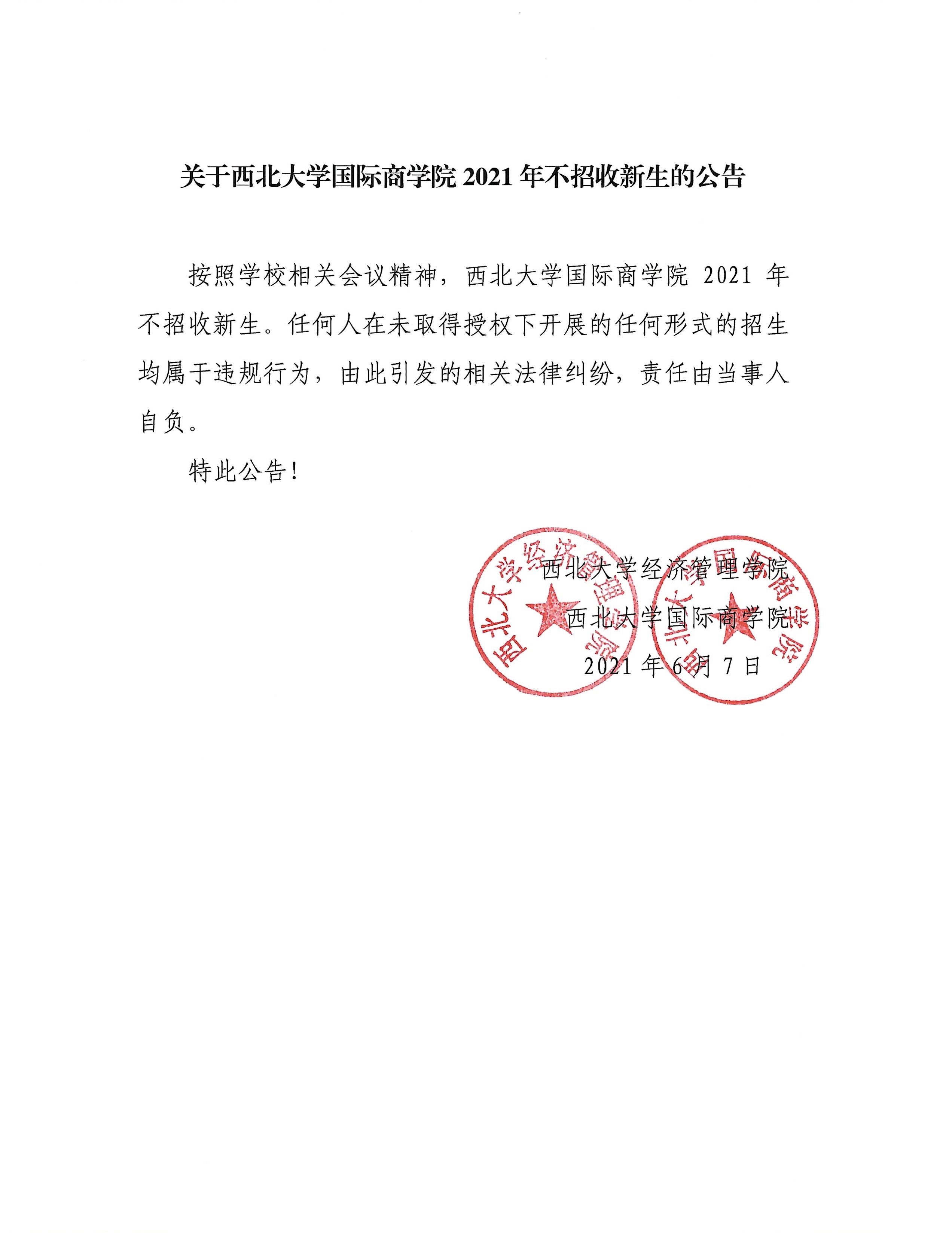 关于welcome欢迎光临威尼斯集团国际商学院2021年不招收新生的公告