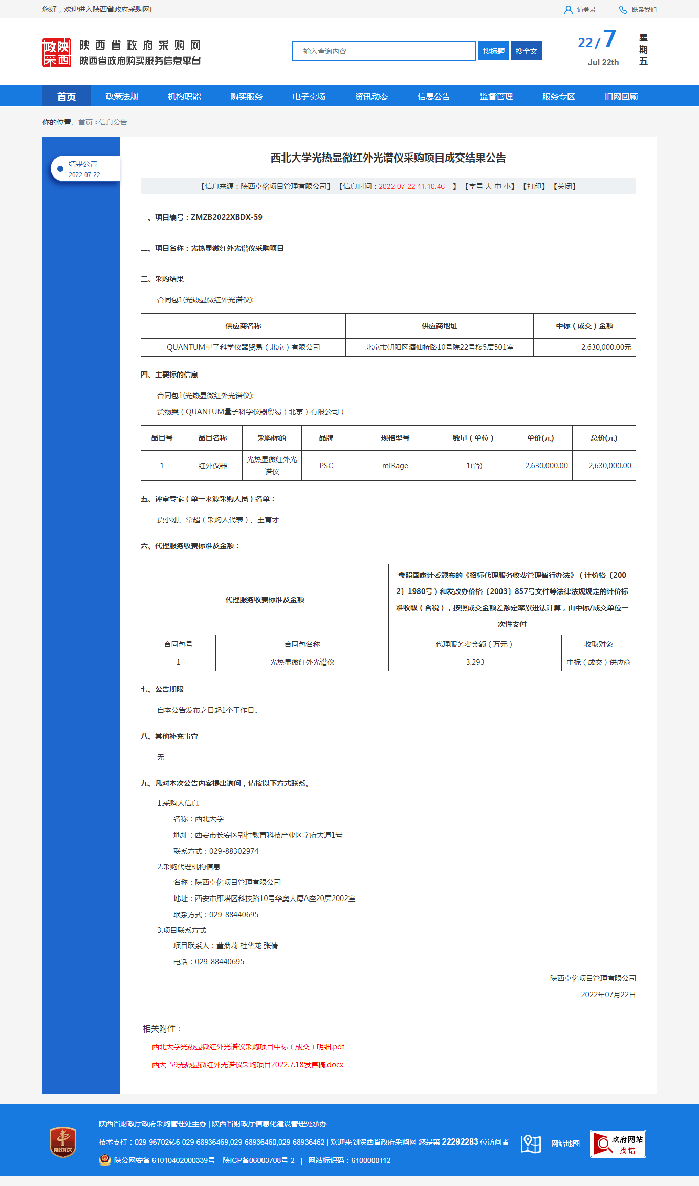 welcome欢迎光临威尼斯集团光热显微红外光谱仪采购项目成交结果公告 作者: 编辑:采购与招标办公室 时间:2022-07-22 原公告链接:http://www.ccgp-shaanxi.gov.cn/freecms/site/shaanxi/ggxx/info/2022/8a69c82b821eee7e018223ddf6f60055.html?noticeType=001025¬iceId=439f922a-096c-11ed-9a8e-08c0eb20c666
