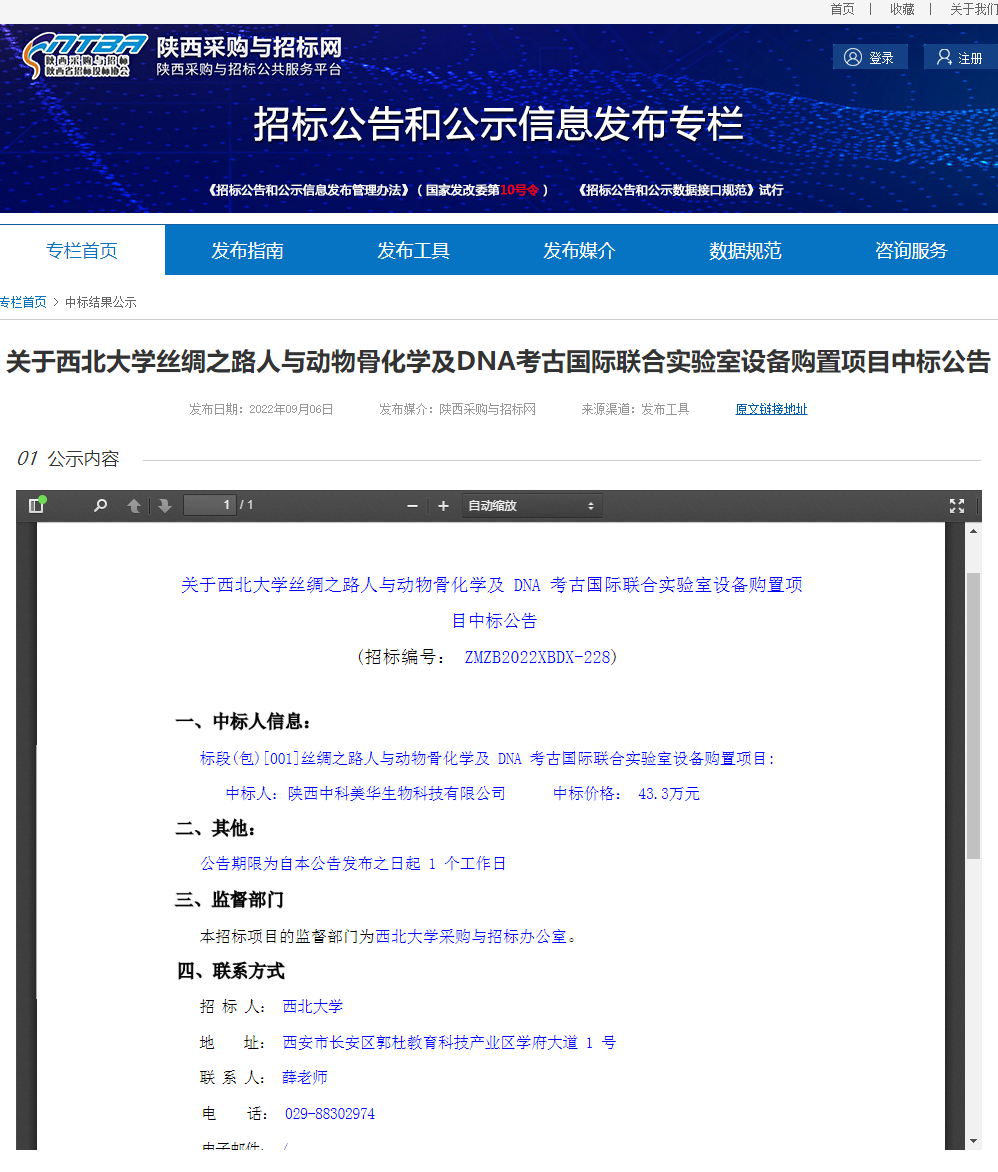 关于welcome欢迎光临威尼斯集团丝绸之路人与动物骨化学及DNA考古国际联合实验室设备购置项目中标公告 作者: 编辑:采购与招标办公室 时间:2022-09-06 原公告链接:http://bulletin.sntba.com/resultBulletin/2022-09-06/470905.html