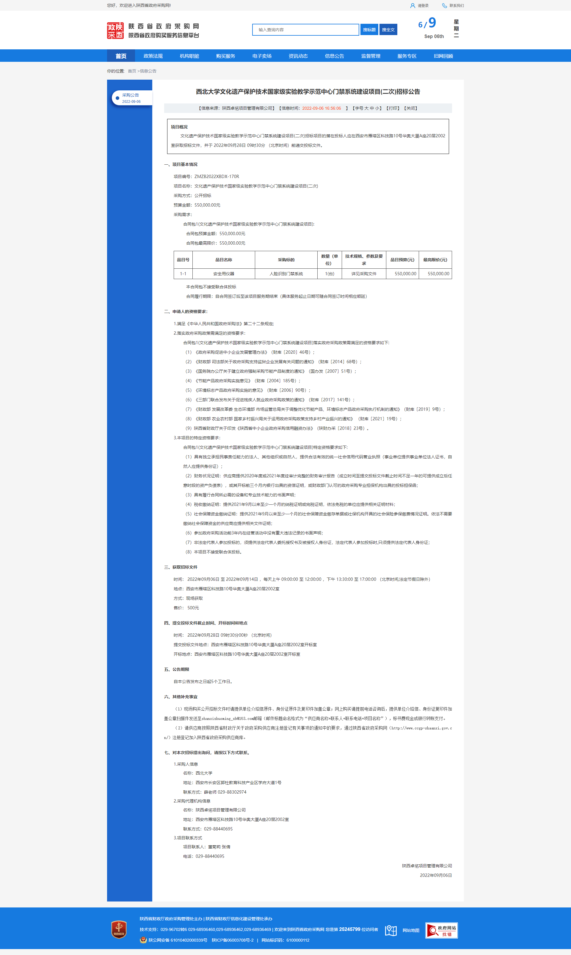 welcome欢迎光临威尼斯集团文化遗产保护技术国家级实验教学示范中心门禁系统建设项目(二次)招标公告 作者: 编辑:采购与招标办公室 时间:2022-09-06 原公告链接:http://www.ccgp-shaanxi.gov.cn/freecms/site/shaanxi/ggxx/info/2022/8a69c63182a32538018311f9ef2e1370.html?noticeType=001011¬iceId=3d8b61ff-2dc2-11ed-9a8e-08c0eb20c666