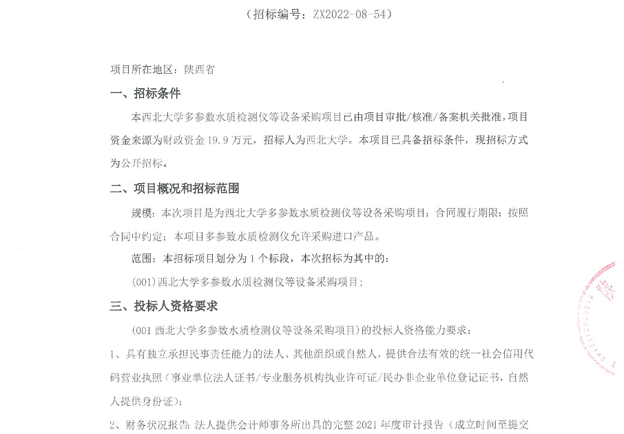 welcome欢迎光临威尼斯集团多参数水质检测仪等设备采购项目公开招标公告 作者: 编辑:采购与招标办公室 时间:2022-11-03 原公告链接:http://bulletin.sntba.com/biddingBulletin/2022-11-03/494214.html