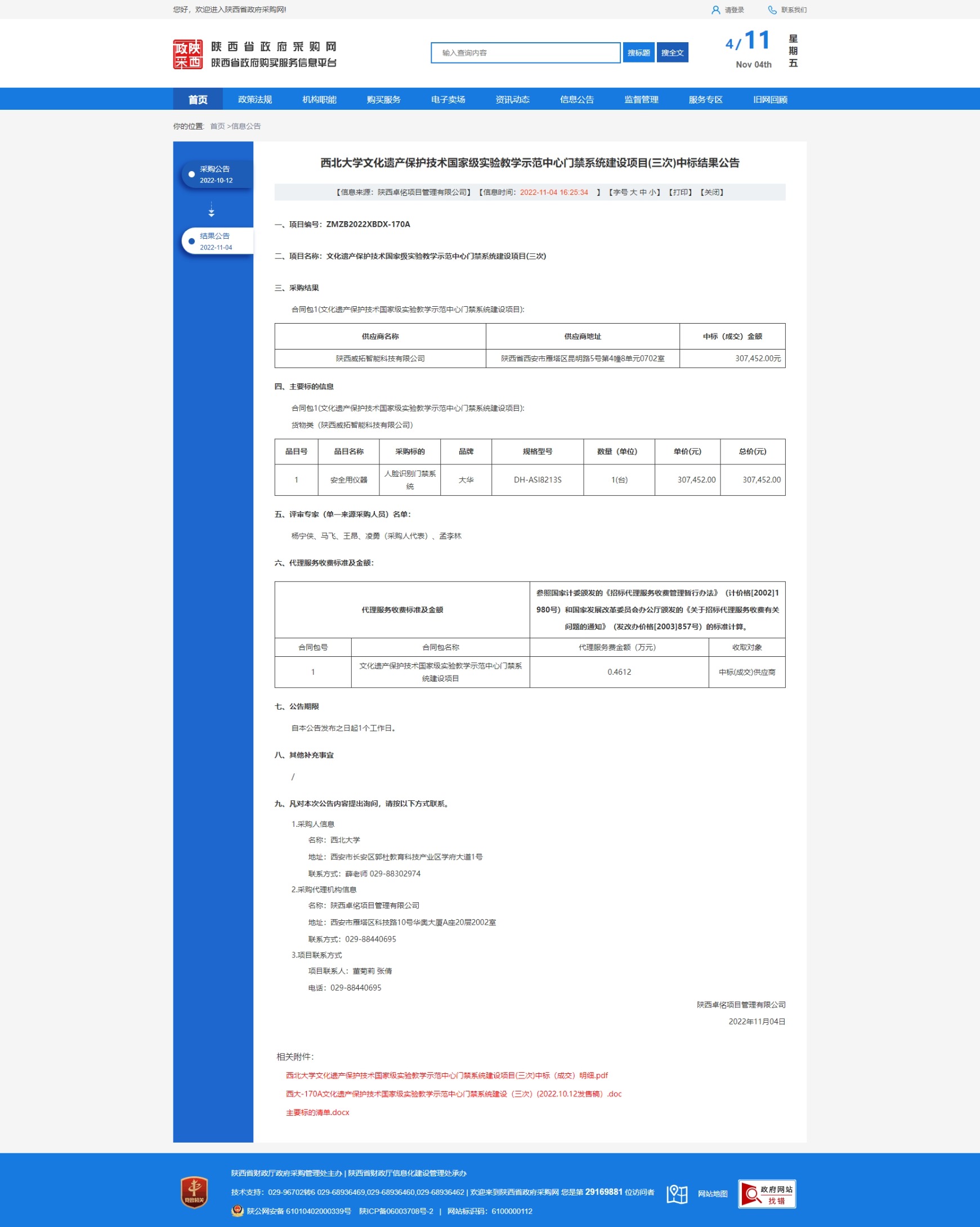 welcome欢迎光临威尼斯集团文化遗产保护技术国家级实验教学示范中心门禁系统建设项目(三次)中标结果公告 作者: 编辑:采购与招标办公室 时间:2022-11-04 原公告链接:http://www.ccgp-shaanxi.gov.cn/freecms/site/shaanxi/ggxx/info/2022/8a69c1948405afd90184419c635f2343.html?noticeType=001021¬iceId=de821f62-5c1a-11ed-9a8e-08c0eb20c666