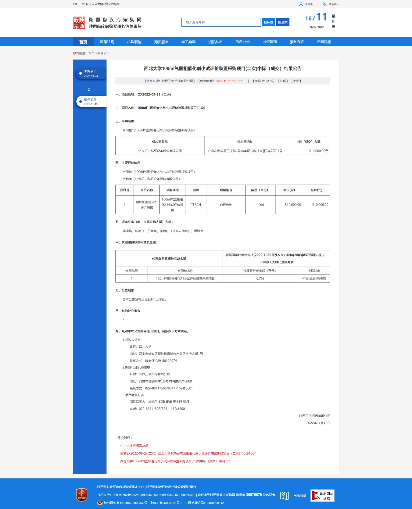 welcome欢迎光临威尼斯集团100ml气固相催化剂小试评价装置采购项目(二次)中标(成交)结果公告 作者: 编辑:采购与招标办公室 时间:2022-11-16 原公告链接:http://www.ccgp-shaanxi.gov.cn/freecms/site/shaanxi/ggxx/info/2022/8a69c4c88405ac2f01847aa0e4f766f8.html?noticeType=001021¬iceId=1267a740-64cd-11ed-9a8e-08c0eb20c666