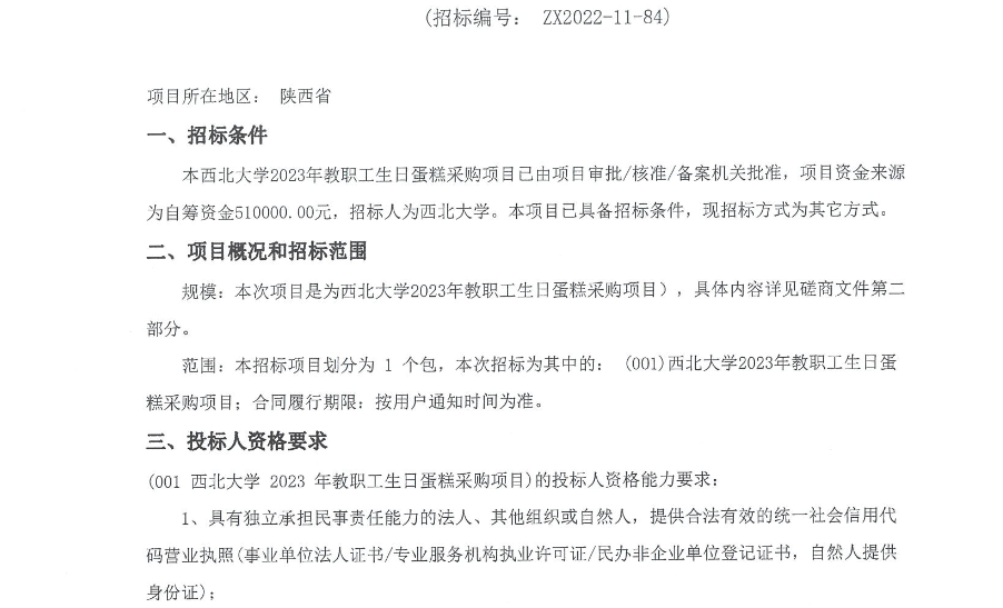 welcome欢迎光临威尼斯集团2023年教职工生日蛋糕采购项目竞争性磋商公告 作者: 编辑:采购与招标办公室 时间:2022-11-30 原公告链接:http://bulletin.sntba.com/biddingBulletin/2022-11-30/505076.html