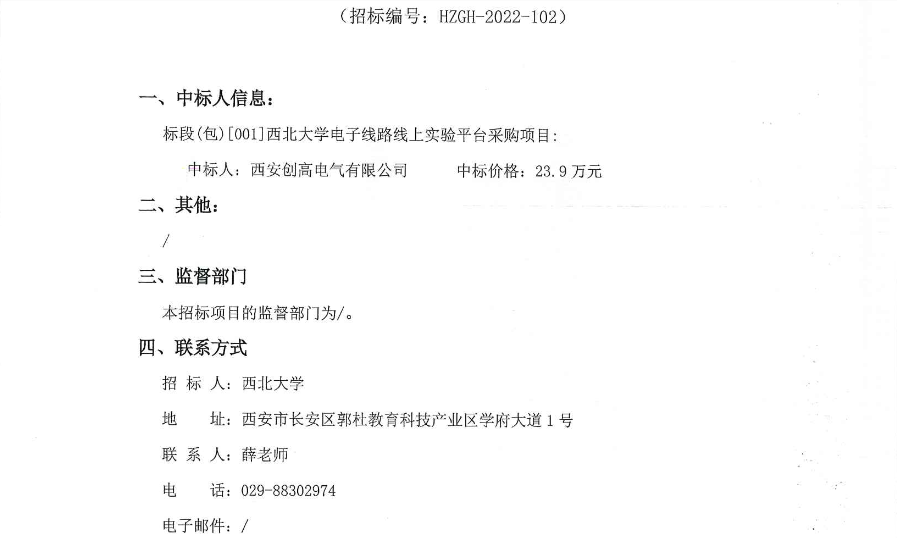 welcome欢迎光临威尼斯集团电子线路线上实验平台采购项目中标结果公告 作者: 编辑:采购与招标办公室 时间:2022-12-02 原公告链接:http://bulletin.sntba.com/resultBulletin/2022-12-02/505921.html