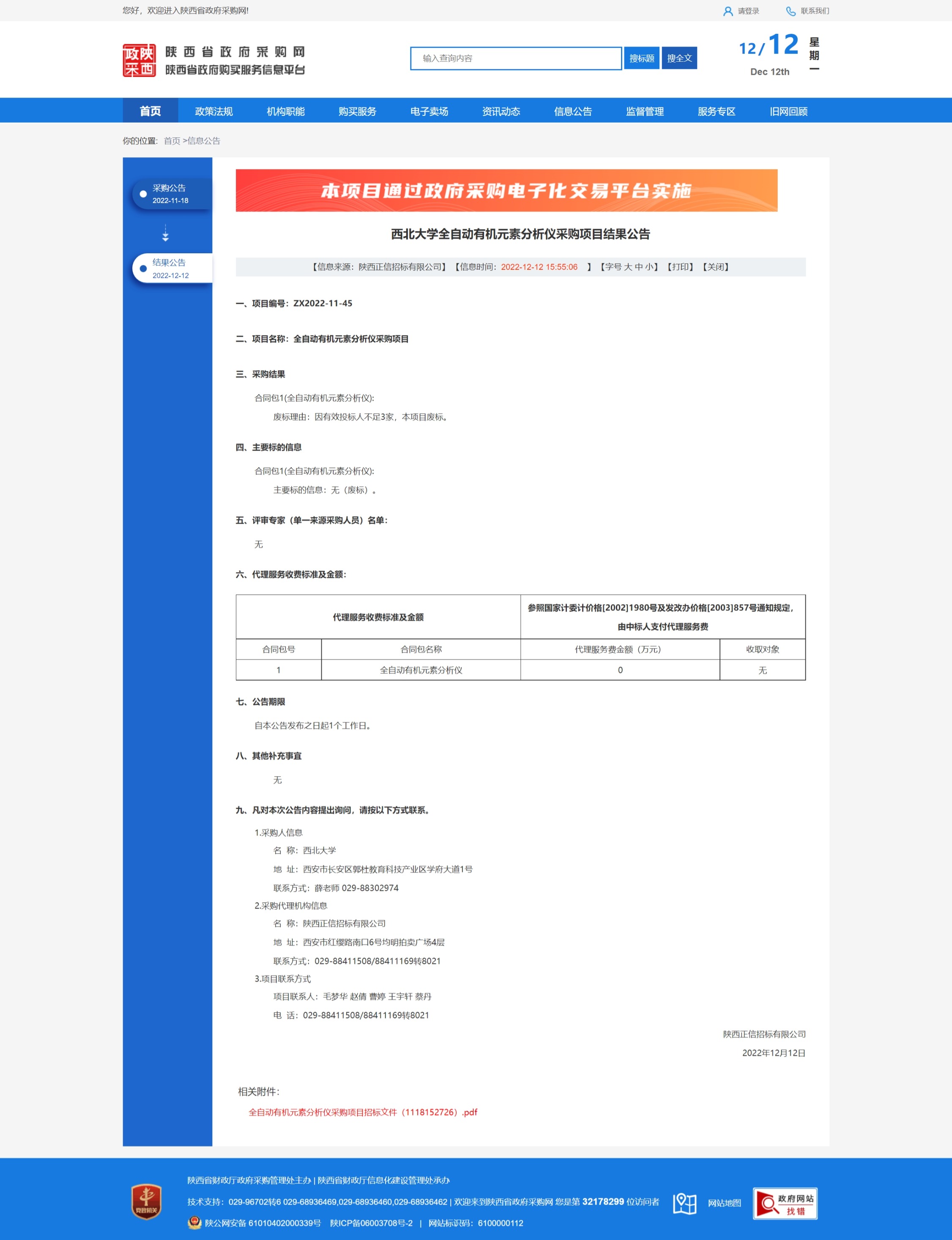 welcome欢迎光临威尼斯集团全自动有机元素分析仪采购项目结果公告 作者: 编辑:采购与招标办公室 时间:2022-12-12 原公告链接:http://www.ccgp-shaanxi.gov.cn/freecms/site/shaanxi/ggxx/info/2022/8a69c86384ea4cb5018504dda82a5145.html?noticeType=001006¬iceId=fc98d5c7-79f2-11ed-9a8e-08c0eb20c666