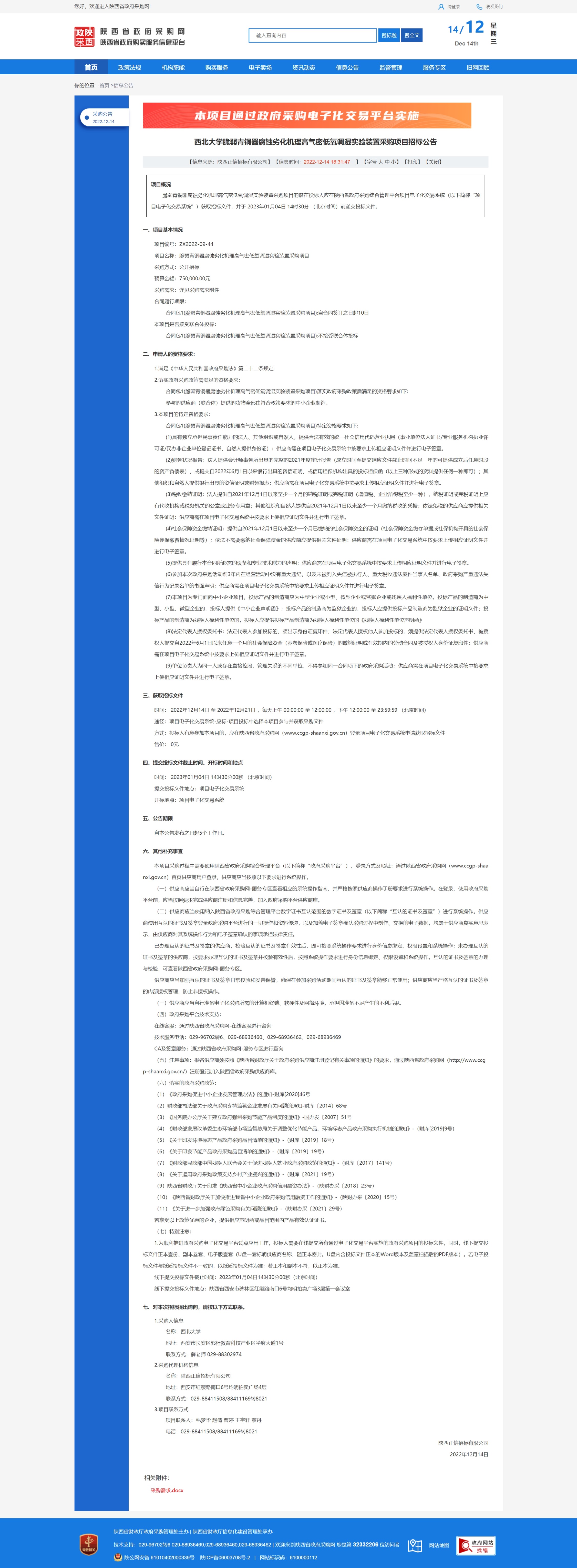 welcome欢迎光临威尼斯集团脆弱青铜器腐蚀劣化机理高气密低氧调湿实验装置采购项目招标公告 作者: 编辑:采购与招标办公室 时间:2022-12-14 原公告链接:http://www.ccgp-shaanxi.gov.cn/freecms/site/shaanxi/ggxx/info/2022/8a69c04c84ea4f7e0185100661482b70.html?noticeType=001011¬iceId=37595ef0-7b9b-11ed-9a8e-08c0eb20c666