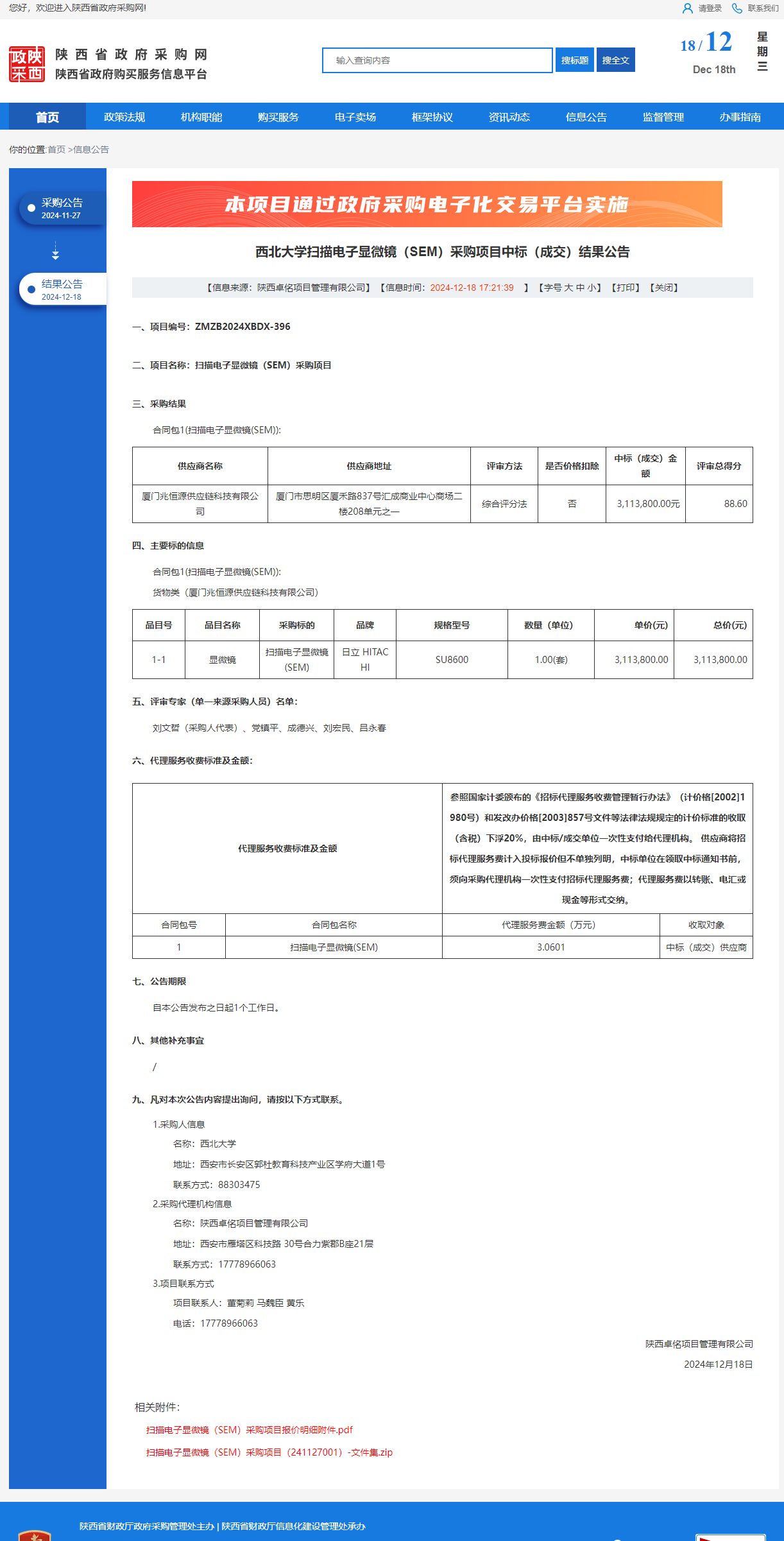 welcome欢迎光临威尼斯集团扫描电子显微镜(SEM)采购项目中标(成交)结果公告 作者:采购与招标办公室 编辑: 时间:2024-12-18 原公告链接:https://www.ccgp-shaanxi.gov.cn/freecms/site/shaanxi/ggxx/info/2024/8a69c95d921859f00193d90183470ad8.html?noticeType=001021¬iceId=1e709926-bd23-11ef-8063-08c0eb20c666