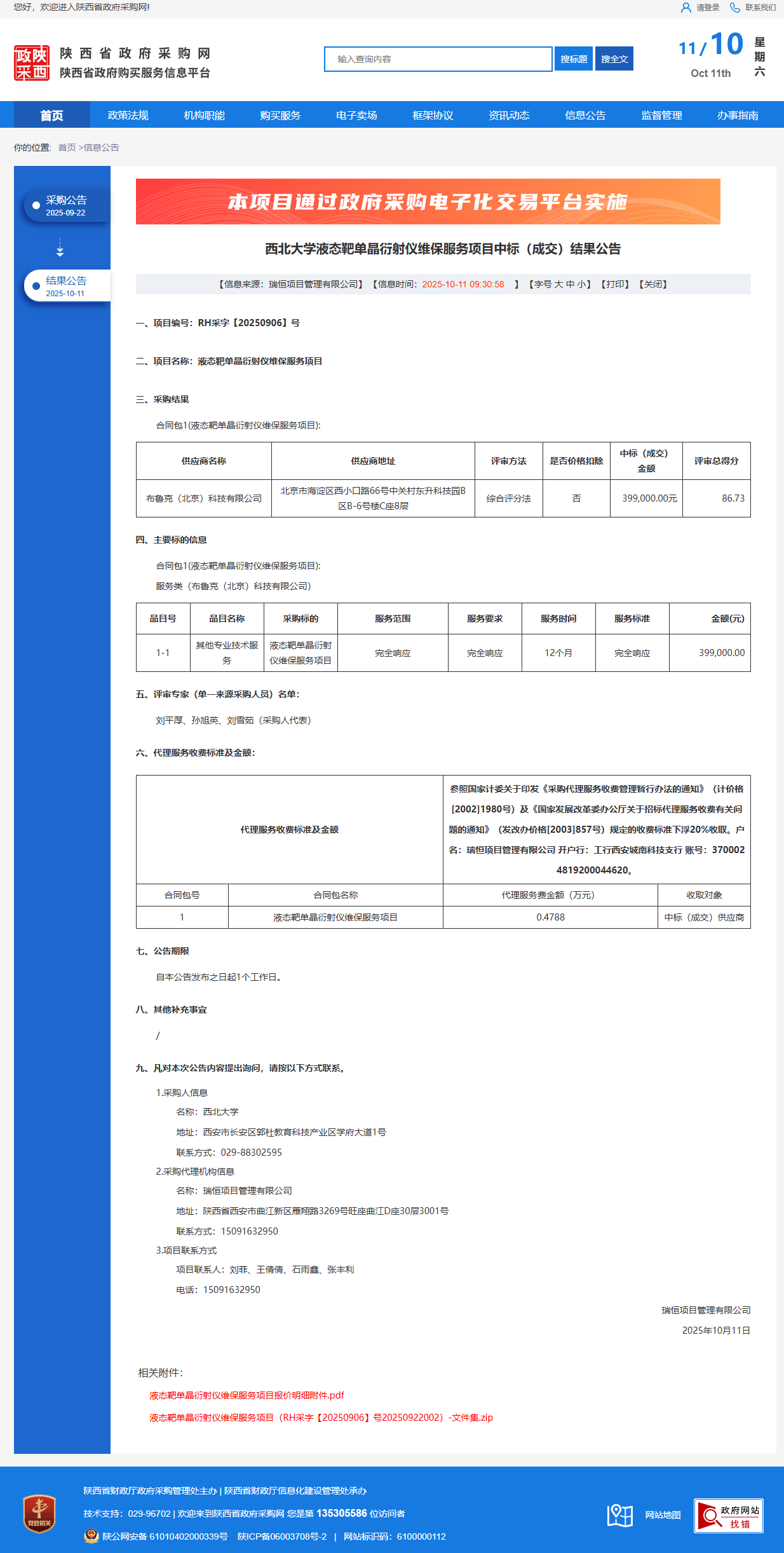 welcome欢迎光临威尼斯集团液态靶单晶衍射仪维保服务项目中标(成交)结果公告
