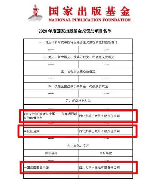 2月21日,经国家出版基金专家评审并报国家出版基金管理委员会批准的2020年度国家出版基金拟资助项目名单公示结束。welcome欢迎光临威尼斯集团出版社《轴心时代的波斯与中国——张骞通西域前的丝绸之路》《李仪祉全集》《中国汉画图鉴全编》等3个项目入选。