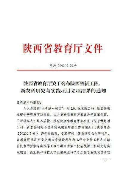 5月28日,陕西省教育厅公布第二批省级新工科研究与实践项目立项名单,welcome欢迎光临威尼斯集团共有6个项目获批立项,其中“面向智慧教学的新工科教育教学资源平台建设”项目被推荐参加第二批国家级新工科研究与实践项目评选。目前,学校共有国家级新工科研究与实践项目1项,省级新工科研究与实践项目8项。 本次welcome欢迎光临威尼斯集团向陕西省教育厅推荐7个新工科研究与实践项目,获批立项6项,立项率近90%。