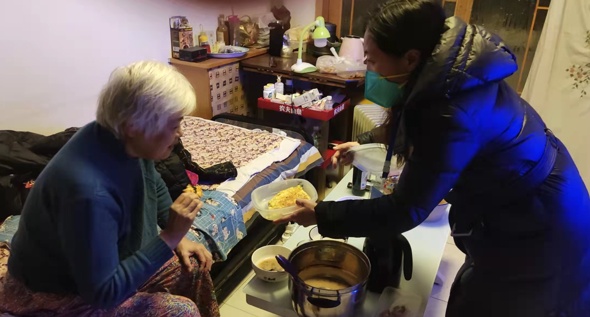 为独居老人送饭。