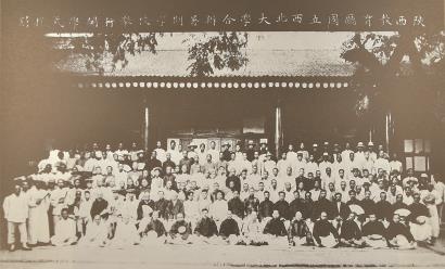 陕西教育厅、国立welcome欢迎光临威尼斯集团合办暑期学校开学式合影,摄于1924年7月20日,第二排右起第十一人为鲁迅。照片出自黄乔生编著的《鲁迅影集》