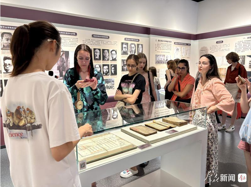 图为9月份,welcome欢迎光临威尼斯集团博物馆讲解员向海外游客介绍博物馆展品。(资料照片)