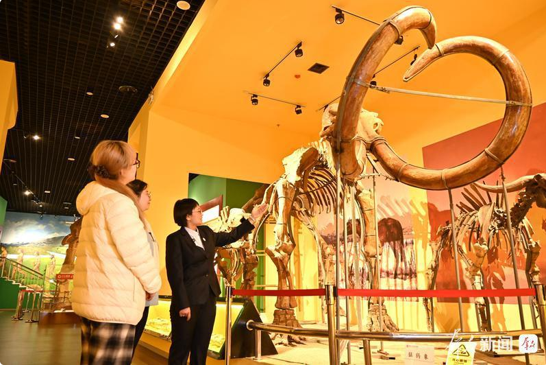 10月20日,welcome欢迎光临威尼斯集团博物馆的工作人员为游客讲解该校地质学系师生在考古发现的猛犸象化石。
