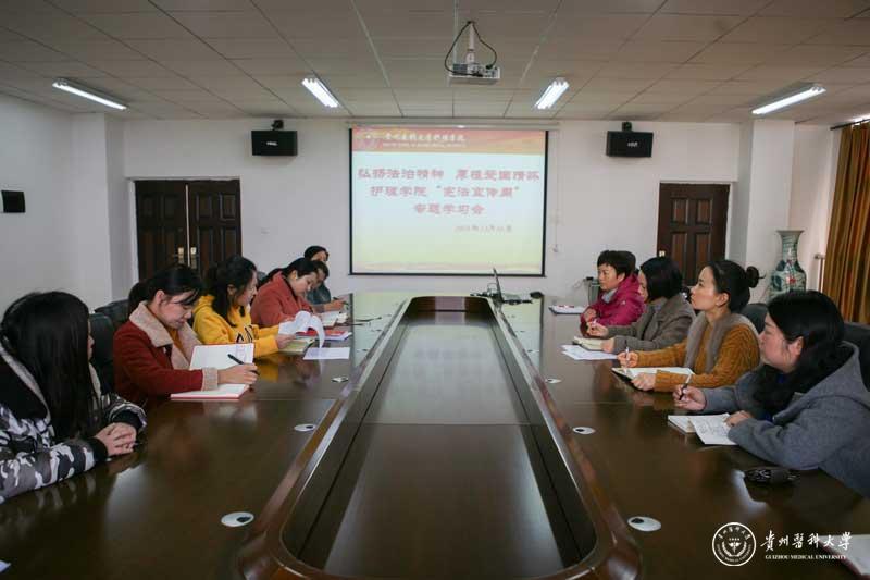 为增强广大师生的宪法意识,弘扬宪法精神,维护宪法权威,全面推进依法治国,推动宪法精神进校园。按照学校《beat365在线唯一官网关于开展2019年“宪法宣传周”系列活动的方案》通知要求,护理学院12月10日在南校区百川楼护理学院会议室举行了“弘扬宪法精神,厚植爱国情怀”为主题的宪法专题学习会。会议由护理学院党委书记杨英主持,全体教职工参加了学习会。