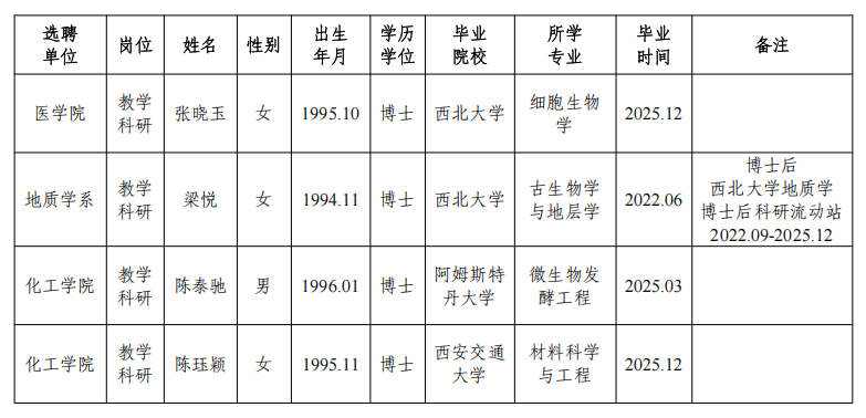 注:1.本人须在公示期满后1个月内签订就业协议(开具接收函),并提前准备威尼斯官网师资博士后入站材料(材料清单详见:https://rsc.nwu.edu.cn/bshgz/jczdjcl.htm);