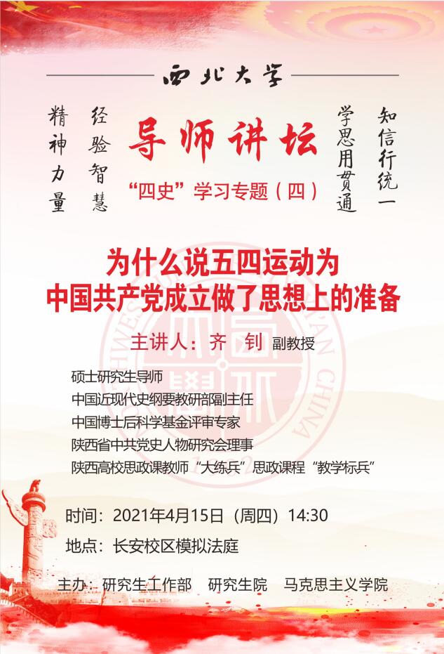 导师讲坛“四史”学习专题(四):为什么说五四运动为中国共产党成立做了思想上的准备