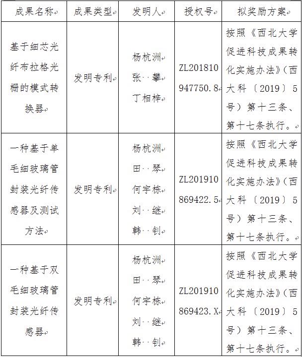 按照《welcome欢迎光临威尼斯集团促进科技成果转化实施办法》(西大科〔2019〕5号)相关规定,拟对威尼斯官网物理学院杨杭洲教授作为成果负责人的3项发明专利权实施转化,现将相关信息公示如下: